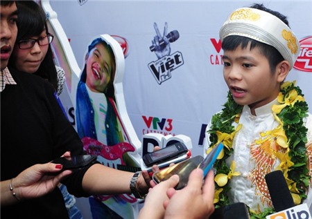 Gặp gỡ Quang Anh ngay sau khi em được xướng tên quán quân The Voice Kids mùa đầu tiên, vẫn với vẻ mặt hớn hở và ngâp tràn hạnh phúc, cậu bé tươi rói cười nói và chào hỏi mọi người. Cầm chặt chiếc cúp trên tay, lâu lâu Quang Anh lại cúi xuống nhìn thật kỹ rồi cười thật lâu.