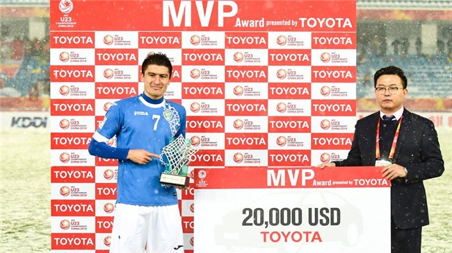 Ở đây, AFC trao danh hiệu Cầu thủ xuất sắc nhất U23 châu Á cho Odiljon Hamrobekov, tiền vệ mang áo số 7 của U23 Uzbekistan.