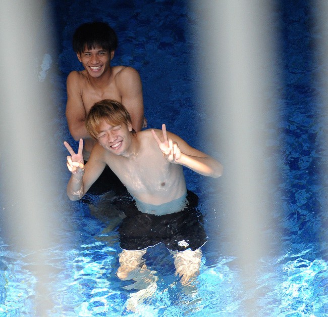 Sau khi kết thúc bài tập nhẹ ngoài trời, các cầu thủ đã đá chính tối qua của Olympic Việt Nam đã được chri định tập hồi phục dưới bể nước đá của khách sạn Harper. Đây là dịp hiếm hoi mà NHM được nhìn thấy hình xăm ấn tượng trên người của ngôi sao trẻ Quang Hải.