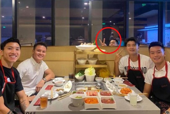 Thấy 4 cầu thủ nổi tiếng đang tạo kiểu sắp check-in, thanh niên ngồi sau cơ hội ké tấm hình đã giật sạch spotlight