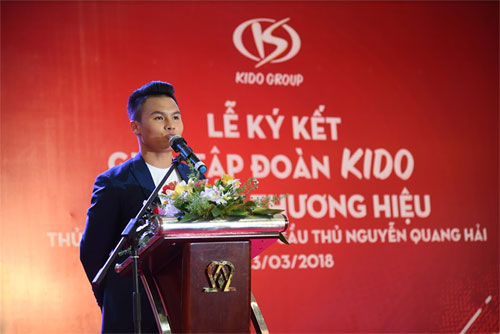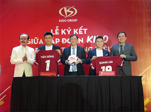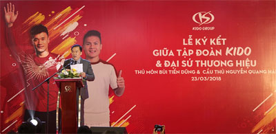 Tập đoàn KIDO vừa tổ chức Lễ ký kết với hai Đại sứ thương hiệu độc quyền - cầu thủ Nguyễn Quang Hải và thủ môn Bùi Tiến Dũng. Năm 2018, hai cầu thủ này sẽ đại diện cho KIDO mang đến hình ảnh mới trẻ trung đầy năng lượng.