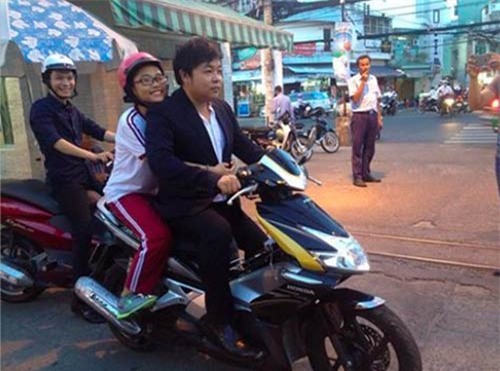 Chưa dừng lại, nam ca sĩ hát nhạc dân gian lại tiếp tục đi xe máy, đầu trần không đội mũ bảo hiểm trên đường phố Sài thành cùng với ghi chú: “Chiều Sài Gòn nắng nhạt. Quang Lê quên mũ bảo hiểm, bị giao thông (cảnh sát giao thông- PV) tuýt còi nhưng không phạt, chỉ cảnh cáo lần đầu. Các anh quá dễ thương phải không? Gửi 1000 nụ hôn”. Bức ảnh này của Quang Lê khiến nhiều fan bức xúc.