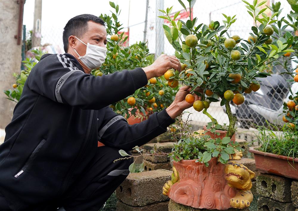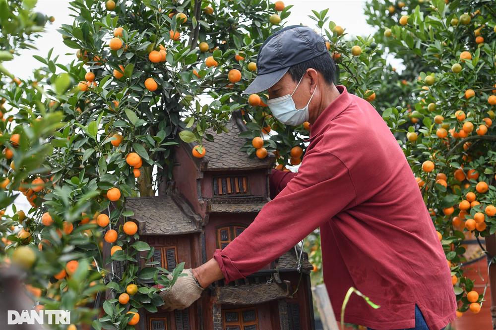 Anh Hoàng cho biết, ngay sau Tết Nguyên Đán 2021, anh đã cho nhập chậu, trồng cây và uốn nắn suốt gần một năm trời để cho ra được thành phẩm quất bonsai đẹp nhất tới tay người dân.