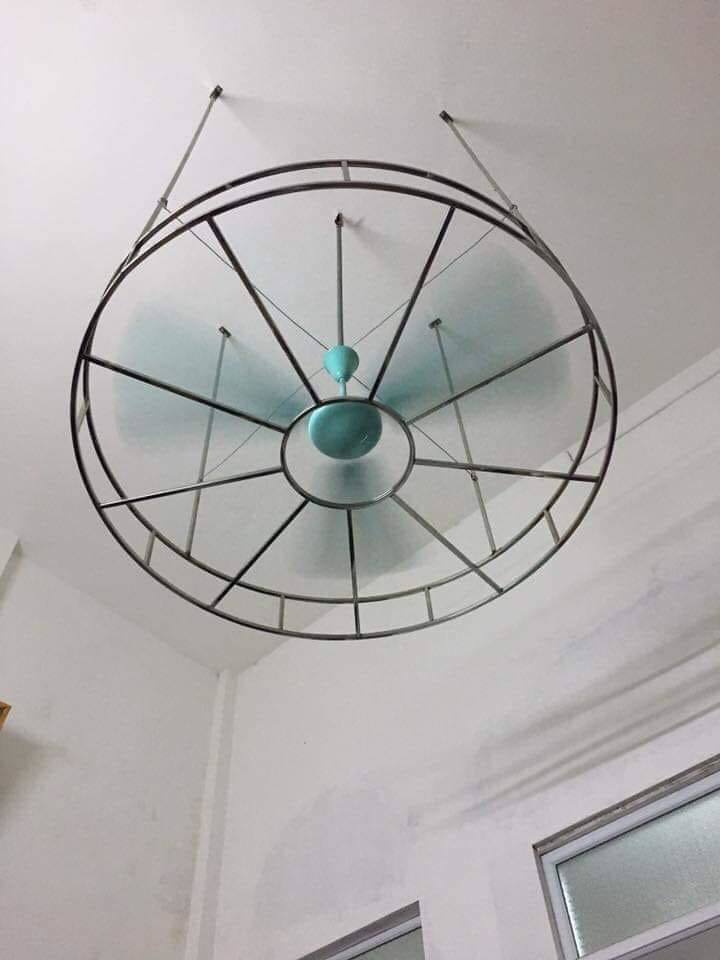 Thành viên Nguyễn Ngọc chia sẻ: “Có khi nào quạt không rơi mà lồng sắt rơi trước không nhỉ”.