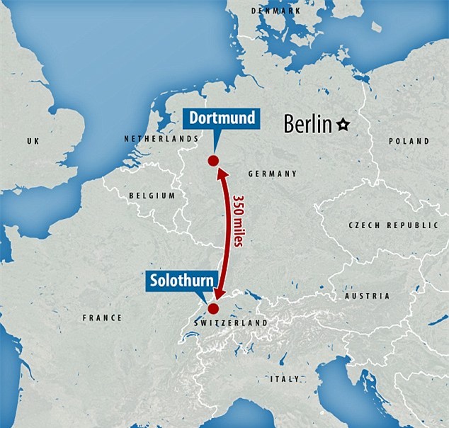 Từ nhà của cậu bé tại thị trấn Solothurn, Thuỵ Sĩ đến nơi cậu bé mất tích cách 350 dặm (560km).