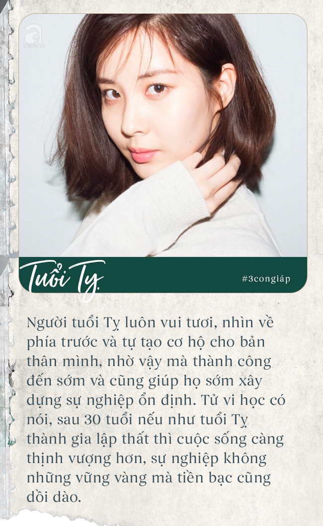 Trời sinh tuổi Tỵ là những người thông minh, lanh lợi, và biết ứng xử trong mọi hoàn cảnh. Người tuổi Tỵ rất giỏi trong giao tiếp và biết dùng sự tự tin của mình vào đúng chỗ, nhờ vậy mà cuộc sống xung quanh tuổi Tỵ đều diễn ra suôn sẻ và thuận lợi. Trong số những con giáp, tuổi Tỵ rất giỏi trong việc đối nhân xử thế, dù có rơi vào tình hình khó khăn thế nào nhưng họ vẫn sắp xếp một cách ổn thỏa khiến ai cũng ngưỡng mộ. Người tuổi Tỵ luôn vui tươi, nhìn về phía trước và tự tạo cơ hộ cho bản thân mình, nhờ vậy mà thành công đến sớm và cũng giúp họ sớm xây dựng sự nghiệp ổn định. Tử vi học có nói, sau 30 tuổi nếu như tuổi Tỵ thành gia lập thất thì cuộc sống càng thịnh vượng hơn, sự nghiệp không những vững vàng mà tiền bạc cũng dồi dào. Còn đối với người độc thân tuổi Tỵ, sau 30 chưa yên bề cũng chẳng sao, ít nhất họ cũng là những người thành đạt có của ăn của để, muốn làm gì thì làm, không phiền não về vật chất mà chỉ cần tận hưởng cuộc sống tinh thần viên mãn.