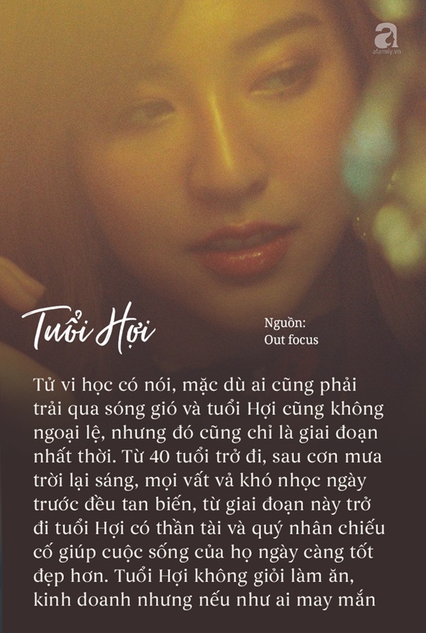 Tử vi học có nói, mặc dù ai cũng phải trải qua sóng gió và tuổi Hợi cũng không ngoại lệ, nhưng đó cũng chỉ là giai đoạn nhất thời. Từ 40 tuổi trở đi, sau cơn mưa trời lại sáng, mọi vất vả khó nhọc ngày trước đều tan biến, từ giai đoạn này trở đi tuổi Hợi có thần tài và quý nhân chiếu cố giúp cuộc sống của họ ngày càng tốt đẹp hơn. Tuổi Hợi không giỏi làm ăn, kinh doanh nhưng nếu như ai may mắn có được năng khiếu đó thì cuộc sống thăng hoa không ngừng, bất kể làm việc gì cũng kiếm được nhiều tiền. Nhìn chung, hậu vận tuổi Hợi viên mãn đủ đầy.