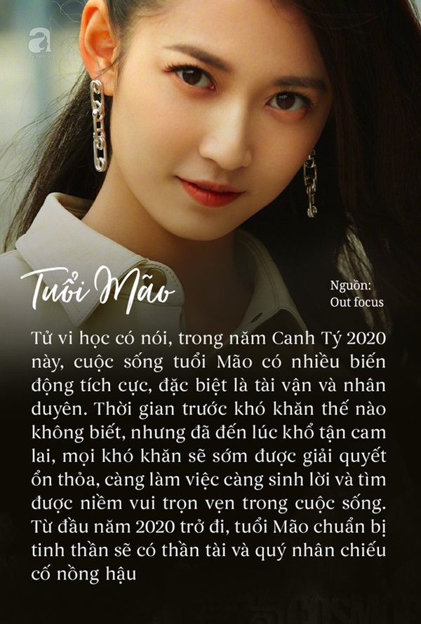 Tử vi học có nói, trong năm Canh Tý 2020 này, cuộc sống tuổi Mão có nhiều biến động tích cực, đặc biệt là tài vận và nhân duyên. Thời gian trước khó khăn thế nào không biết, nhưng đã đến lúc khổ tận cam lai, mọi khó khăn sẽ sớm được giải quyết ổn thỏa, càng làm việc càng sinh lời và tìm được niềm vui trọn vẹn trong cuộc sống. Từ đầu năm 2020 trở đi, tuổi Mão chuẩn bị tinh thần sẽ có thần tài và quý nhân chiếu cố nồng hậu, mọi thứ bao gồm tình tiền đều viên mãn đủ đầy, hãy nắm bắt cơ hội tốt để đổi vận nhé!