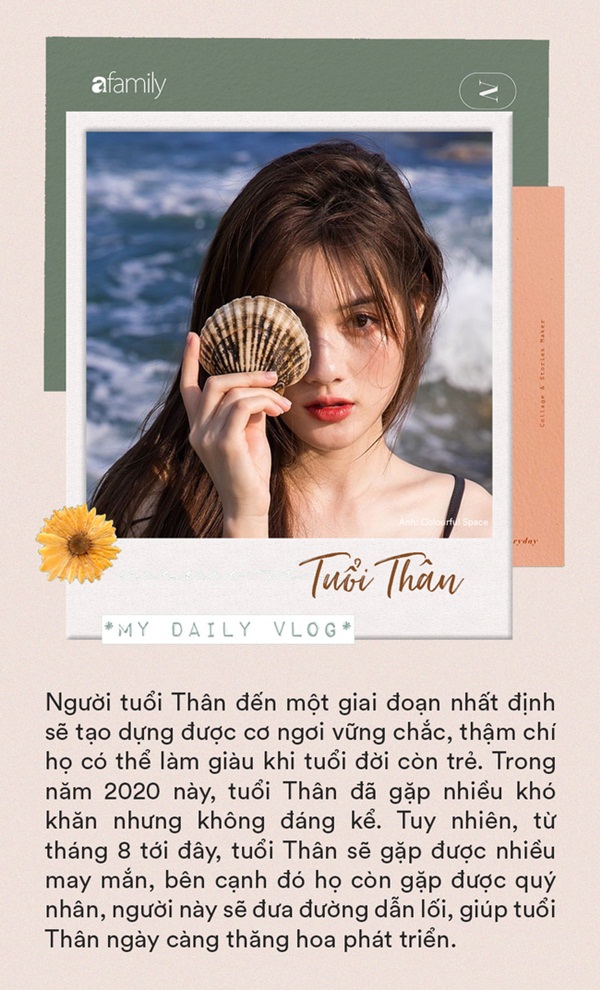 Những người tuổi Thân vốn hiền lành, siêng năng và kiên nhẫn. So với những người khác, tuổi Thân không gặp nhiều may mắn nhưng họ luôn có sự phấn đấu không ngừng, nhờ vậy mà có bản lĩnh vượt qua mọi thứ. Người tuổi Thân đến một giai đoạn nhất định sẽ tạo dựng được cơ ngơi vững chắc, thậm chí họ có thể làm giàu khi tuổi đời còn trẻ. Trong năm 2020 này, tuổi Thân đã gặp nhiều khó khăn nhưng không đáng kể. Tuy nhiên, từ tháng 8 tới đây, tuổi Thân sẽ gặp được nhiều may mắn, bên cạnh đó họ còn gặp được quý nhân, người này sẽ đưa đường dẫn lối, giúp tuổi Thân ngày càng thăng hoa phát triển. Trong giai đoạn này, nếu như biết nắm bắt cơ hội tốt, tuổi Thân sẽ có khả năng đổi vận trong một đêm.