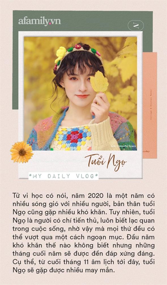 Tử vi học có nói, năm 2020 là một năm có nhiều sóng gió với nhiều người, bản thân tuổi Ngọ cũng gặp nhiều khó khăn. Tuy nhiên, tuổi Ngọ là người có chí tiến thủ, luôn biết lạc quan trong cuộc sống, nhờ vậy mà mọi thứ đều có thể vượt qua một cách ngoạn mục. Đầu năm khó khăn thế nào không biết nhưng những tháng cuối năm sẽ được đền đáp xứng đáng. Cụ thể, từ cuối tháng 11 âm lịch tới đây, tuổi Ngọ sẽ gặp được nhiều may mắn. Bên cạnh đó, tuổi Ngọ vốn biết tận dụng mọi ưu điểm để phát huy, vì vậy một khi nắm bắt được cơ hội, họ sẽ thăng hoa như diều gặp gió, từ đời sống vật chất đến đời sống tinh thần sẽ thập toàn thập mỹ.