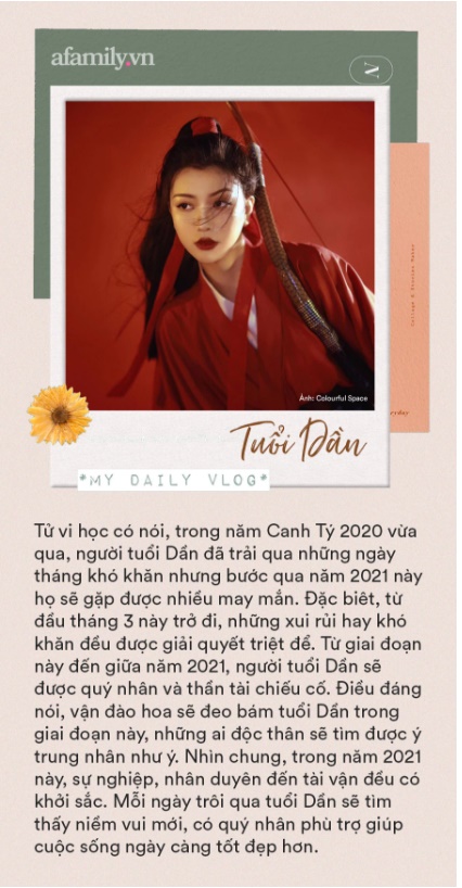 Tử vi học có nói, trong năm Canh Tý 2020 vừa qua, người tuổi Dần đã trải qua những ngày tháng khó khăn nhưng bước qua năm 2021 này họ sẽ gặp được nhiều may mắn. Đặc biêt, từ đầu tháng 3 này trở đi, những xui rủi hay khó khăn đều được giải quyết triệt để. Từ giai đoạn này đến giữa năm 2021, người tuổi Dần sẽ được quý nhân và thần tài chiếu cố. Điều đáng nói, vận đào hoa sẽ đeo bám tuổi Dần trong giai đoạn này, những ai độc thân sẽ tìm được ý trung nhân như ý. Nhìn chung, trong năm 2021 này, sự nghiệp, nhân duyên đến tài vận đều có khởi sắc. Mỗi ngày trôi qua tuổi Dần sẽ tìm thấy niềm vui mới, có quý nhân phù trợ giúp cuộc sống ngày càng tốt đẹp hơn.