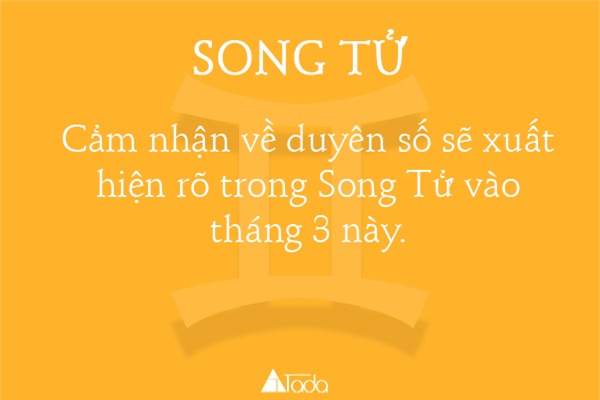 Cảm nhận về duyên số sẽ xuất hiện rõ trong Song Tử vào tháng 3 này. Hãy nắm bắt cảm giác đó và thể hiện thật tốt trước người ấy nhé! Biết đâu, may mắn sẽ đến với Song Tử trong không gian đầy lãng mạn của tháng 3?