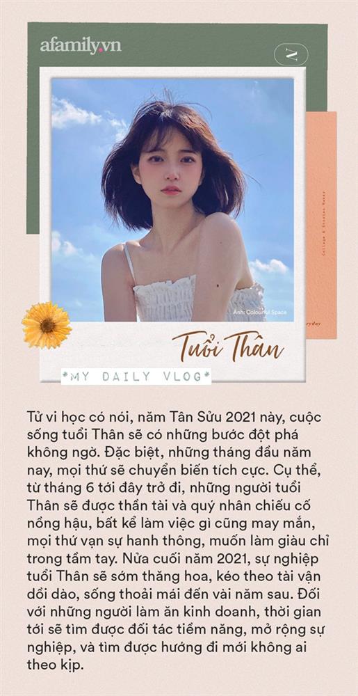 Tử vi học có nói, năm Tân Sửu 2021 này, cuộc sống tuổi Thân sẽ có những bước đột phá không ngờ. Đặc biệt, những tháng đầu năm nay, mọi thứ sẽ chuyển biến tích cực. Cụ thể, từ tháng 6 tới đây trở đi, những người tuổi Thân sẽ được thần tài và quý nhân chiếu cố nồng hậu, bất kể làm việc gì cũng may mắn, mọi thứ vạn sự hanh thông, muốn làm giàu chỉ trong tầm tay. Nửa cuối năm 2021, sự nghiệp tuổi Thân sẽ sớm thăng hoa, kéo theo tài vận dồi dào, sống thoải mái đến vài năm sau. Đối với những người làm ăn kinh doanh, thời gian tới sẽ tìm được đối tác tiềm năng, mở rộng sự nghiệp, và tìm được hướng đi mới không ai theo kịp.