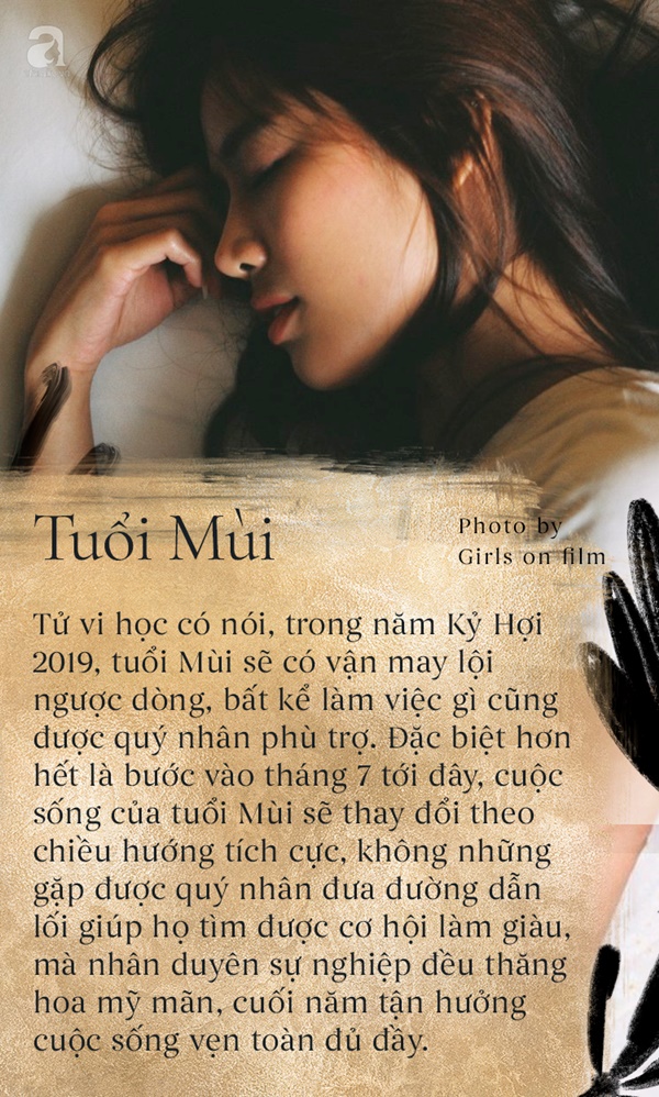 Tử vi học có nói, trong năm Kỷ Hợi 2019, tuổi Mùi sẽ có vận may lội ngược dòng, bất kể làm việc gì cũng được quý nhân phù trợ. Đặc biệt hơn hết là bước vào tháng 7 tới đây, cuộc sống của tuổi Mùi sẽ thay đổi theo chiều hướng tích cực, không những gặp được quý nhân đưa đường dẫn lối giúp họ tìm được cơ hội làm giàu, mà nhân duyên sự nghiệp đều thăng hoa mỹ mãn, cuối năm tận hưởng cuộc sống vẹn toàn đủ đầy.