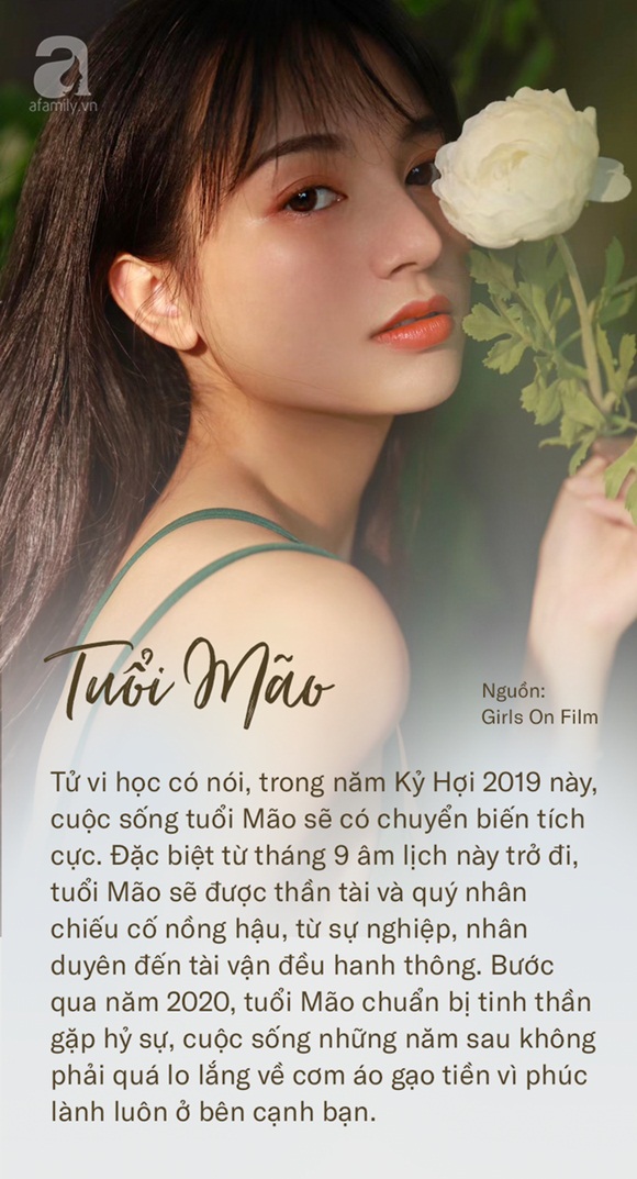 Tử vi học có nói, trong năm Kỷ Hợi 2019 này, cuộc sống tuổi Mão sẽ có chuyển biến tích cực. Đặc biệt từ tháng 9 âm lịch này trở đi, tuổi Mão sẽ được thần tài và quý nhân chiếu cố nồng hậu, từ sự nghiệp, nhân duyên đến tài vận đều hanh thông. Bước qua năm 2020, tuổi Mão chuẩn bị tinh thần gặp hỷ sự, cuộc sống những năm sau không phải quá lo lắng về cơm áo gạo tiền vì phúc lành luôn ở bên cạnh bạn, chỉ cần sống tốt thì mọi thứ tốt đẹp sẽ tự nhiên đến. Cùng chờ xem những điều thành công phía trước nhé!