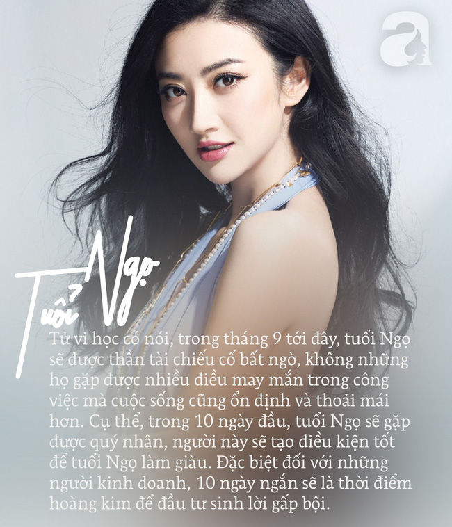 Trời sinh tuổi Ngọ vốn là những người có chí cầu tiến, chăm chỉ và luôn có cái nhìn tích cực, lạc quan trong công việc. Tuổi Ngọ thích tự do, thoải mái sáng tạo, dù cho có thất bại, họ vẫn không bao giờ nản lòng. Thời gian vừa qua, tuổi Ngọ dù rất cố gắng nhưng vẫn không thể đạt được điều mình mong muốn. Thậm chí, có lúc tuổi Ngọ còn muốn buông xuôi tất cả, đợi chờ một cơ hội khác để làm lại từ đâu. Tử vi học có nói, trong tháng 9 tới đây, tuổi Ngọ sẽ được thần tài chiếu cố bất ngờ, không những họ gặp được nhiều điều may mắn trong công việc mà cuộc sống cũng ổn định và thoải mái hơn. Cụ thể, trong 10 ngày đầu, tuổi Ngọ sẽ gặp được quý nhân, người này sẽ tạo điều kiện tốt để tuổi Ngọ làm giàu. Đặc biệt đối với những người kinh doanh, 10 ngày ngắn sẽ là thời điểm hoàng kim để đầu tư sinh lời gấp bội. Hãy nghĩ đến cuộc sống giàu sang phú quý phía trước mà nắm bắt tốt cơ hội nhé!