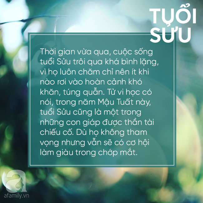 Tử vi học có nói, trong năm Mậu Tuất này, tuổi Sửu cũng là một trong những con giáp được thần tài chiếu cố.