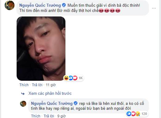 Bên cạnh đó, khi có một số fan bày tỏ sự thất vọng khi không được Quốc Trường trả lời bình luận, anh cũng nhẹ nhàng giải thích lại rằng ngoài những người là bạn bè ngoài đời thì việc Quốc Trường trả lời bình luận của fan là hên xui chứ không phải do anh cố tình.