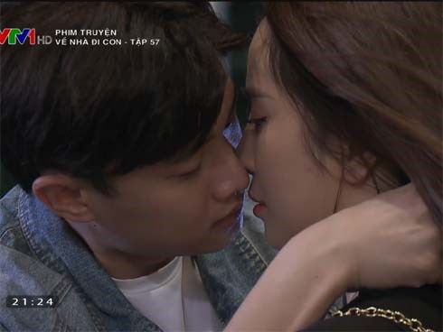 Trong tập 57 "Về nhà đi con", Vũ đã toan khóa môi Nhã khi đeo lên cổ cô nàng chiếc dây chuyền đắt tiền.