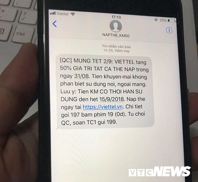 Trong ngày 30/8, rất nhiều thuê bao của 3 nhà mạng lớn là Vinaphone, Viettel và Mobifone nhận được tin nhắn khuyến mại 50% trong ngày 31/8.
