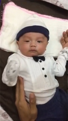 Quý tử cu Tỏi nhà Mạc Hồng Quân chào đời vào lúc 3h33 phút ngày 22/11 năm Bính Thân "con khỉ". Tuy nhiên, cặp đôi thường cố ý giấu mặt con bằng cách chụp từ xa, chuyển thành đen trắng hoặc dùng các icon để che đi. Chính vì thế, các fan rất tò mò muốn biết diện mạo của cậu nhóc.