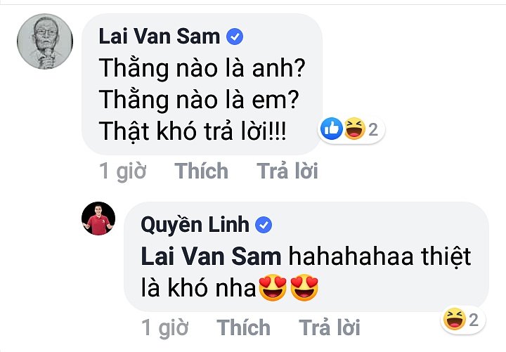 Nhà báo Lại Văn Sâm cũng để lại bình luận: “Thằng nào là anh thằng nào là em, thật khó trả lời“. Chỉ là câu trêu đùa thôi nhưng đàn anh đã “troll” tuổi tác Quyền Linh thật hài hước. Quyền Linh ngày mới bước chân vào làm nghệ thuật gặp khá nhiều lận đận. Sau khi tốt nghiệp trường Sân khấu, có thời gian anh đã bỏ về quê Tiền Giang làm ruộng vì không kiếm được việc làm. Bây giờ khi nhắc về thời kì sự nghiệp vàng son của Quyền Linh, khán giả vẫn nhớ đến anh với nhiều vai diễn ấn tượng. Hai bộ phim “Người Hà Nội” và “Đồng tiền xương máu” chính là tác phẩm ghi dấu ấn Quyền Linh khi đảm nhận vai nam chính.