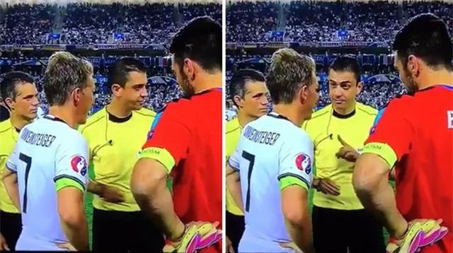 Tình huống hài hước trên xảy ra ở trận tứ kết 3 Euro 2016, giữa tuyển Đức và Italia hôm 3/7.