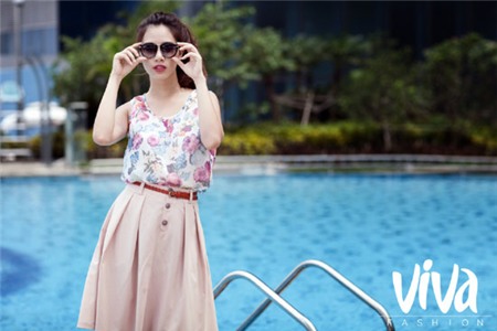 Tông màu be dịu ngọt, ấm áp này rất dễ mặc trong mùa thu kết hợp hoàn hảo với chiếc áo hoa nhẹ nhàng mà nữ tính.