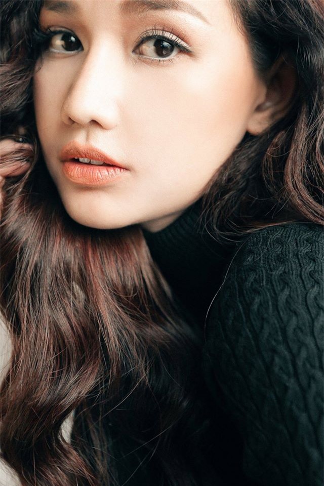 Quỳnh Chi chọn trang điểm tông cam trong veo tôn lên những đường nét gương mặt chuẩn mực.