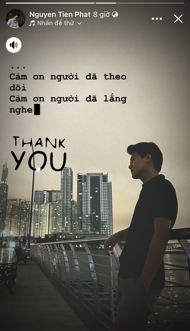 Tiến Phát lại đăng ảnh với lời bài hát Cảm ơn của Đen Vâu