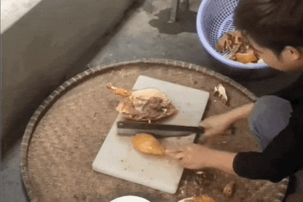 Ra mắt nhà bạn gái, chàng trai căng thẳng chặt thịt gà dưới sự giám sát của hơn chục người trong họ
