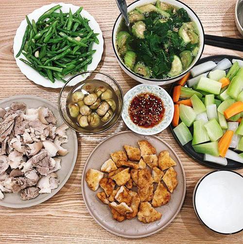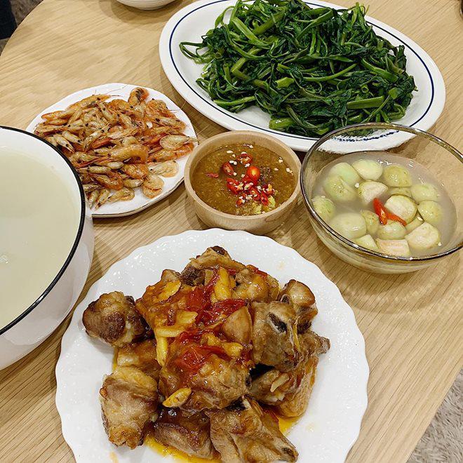 Chỉ cần nhìn các mâm cơm mà Thúy An nấu, ai cũng phải trầm trồ về độ đảm đang, khéo léo của người vợ 8x này.