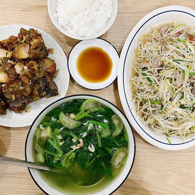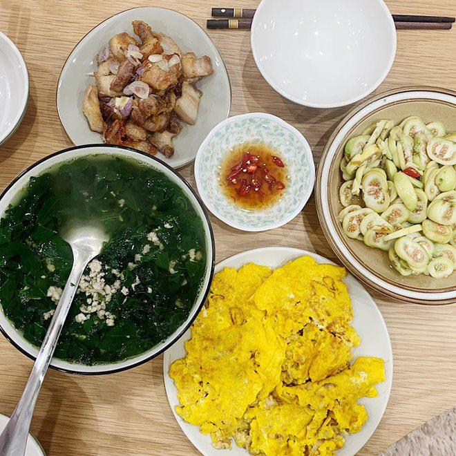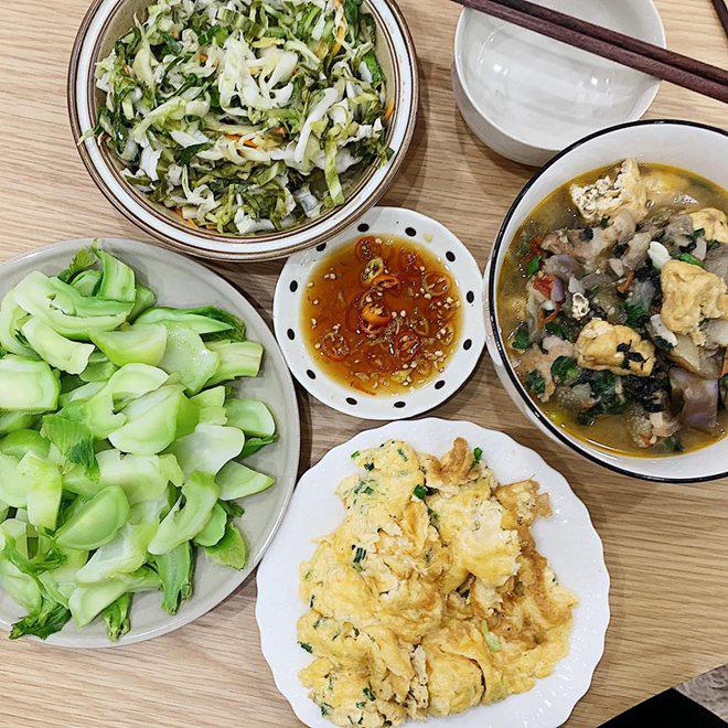 Tuy nhà chỉ có 2 người nhưng không vì thế mà Thúy An lại nấu ăn qua loa cho xong bữa. Chỉ cần nhìn mâm cơm nào cũng từ 3-4 món đủ hương vị, màu sắc hấp dẫn cũng đủ thấy 8x quan tâm, yêu thương và lo lắng cho sức khỏe của chồng đến mức nào.