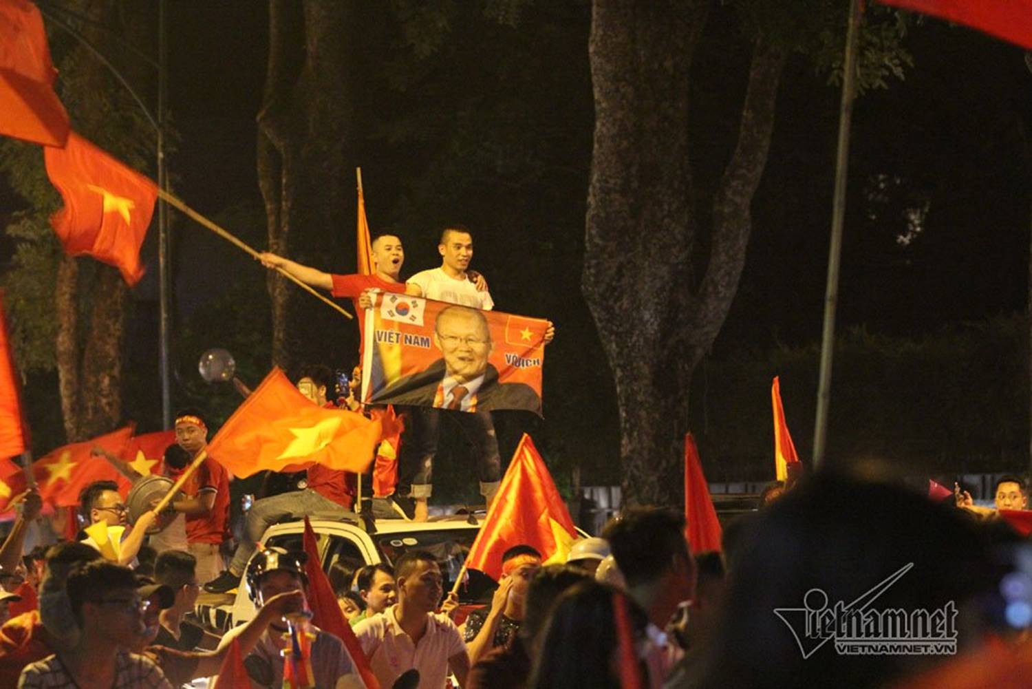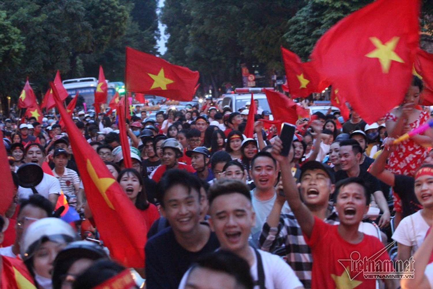 Dòng người đi chậm qua các tuyến phố Hai Bà Trưng, Điện Biên Phủ, Lăng Bác, Hùng Vương, Thanh Niên, Trần Nhật Duật, Nhà hát lớn,... và liên tục hô vang "Việt Nam vô địch".