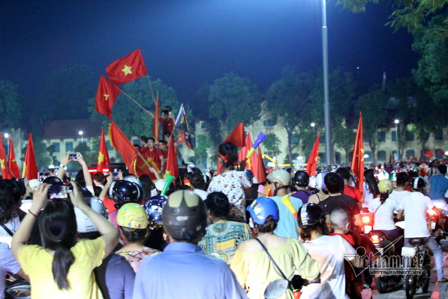 Ngay sau trận đấu, hàng nghìn người đổ về khu vực hồ Hoàn Kiếm reo hò, cổ vũ cho đội tuyển