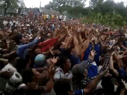 Chiều 30/8, sau khi các cửa hàng cúng cô hồn, hàng trăm thanh niên chen nhau giật tiền lẻ góc đường Trần Hưng Đạo - Phùng Hưng (quận 5), tranh giành làm một số người dân té ngã, ùn tắc giao thông.