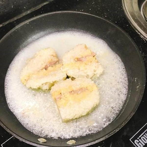 Bước 3: Bật bếp đun ở nhiệt độ khoảng 160 độ, tới khi hết nước, giảm xuống còn 120 độ rồi rán vàng 2 mặt.