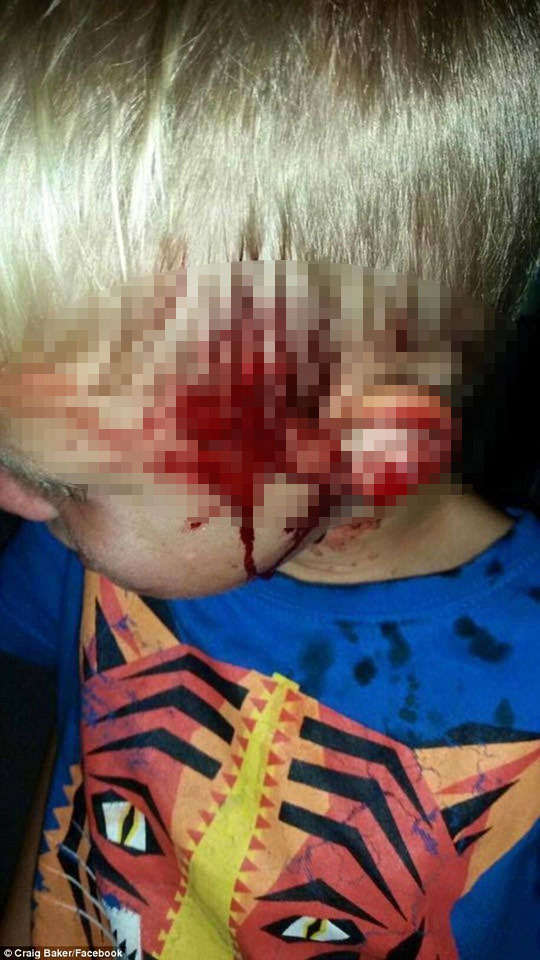 Cậu bé Tyler với vết thương do bị con rắn cắn đầu gây ra. Ảnh: Craig Baker/Facebook