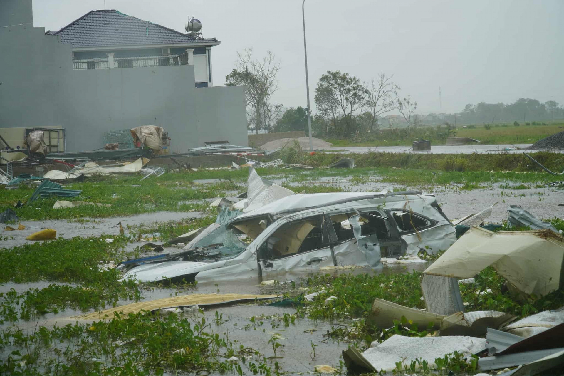 Vượt đoạn đường 20km về đến nhà trai, cô dâu Thanh Hóa ngỡ ngàng về cảnh tượng trước mắt. Nhà chú rể cũng chịu thiệt hại nặng nề vì mưa bão, rạp cưới bị tốc hết, chỉ còn trơ khung.