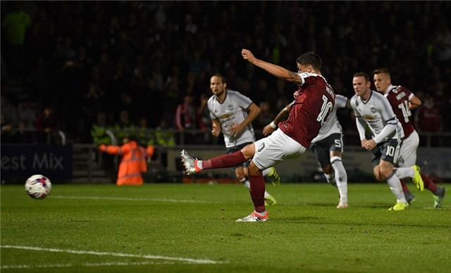 | Tuy nhiên, hàng phòng ngự MU tiếp tục mắc sai lầm. Blind phạm lỗi với cầu thủ Northampton Town trong khu vực cấm địa. Trên chấm 11 m, Alexander Revell đánh bại thủ môn Romero gỡ hòa 1-1 cho đội chủ nhà ở phút 42. |