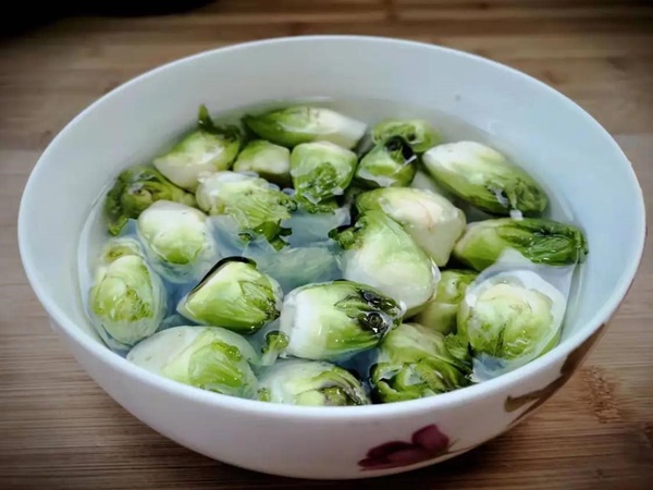 Bước 1: Rau mầm đá bạn chọn mua cây vừa phải có nhiều mầm nhỏ, chúng sẽ tươi, mềm và bạn có thể tận dụng cả cây mà không phải tước bỏ lớp vỏ. Sau khi mua rau về, bạn xả sạch dưới vòi nước rồi cắt từng chồi của mầm đá ra. Tiếp đó thả vào chậu nước có pha muối rồi ngâm trong khoảng 10-15 phút. Sau khi ngâm nước muối xong, bạn vớt ra, rửa lại vài lần cho thật sạch.