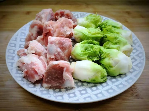350g xương cục (hoặc sườn heo), 8-10 cái chồi rau mầm đá, 2-3 cây hành lá, 5-7 lát gừng, 1 thìa canh rượu nấu ăn, lượng muối vừa phải, chút bột tiêu, một ít bột nêm.