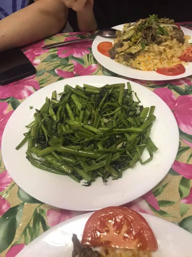 Đĩa rau muống tại Nga có giá hơn 100.000 đồng của chị Thủy.