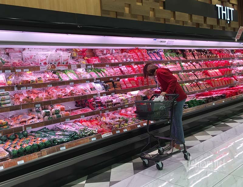 Mặt hàng thịt cũng bày đầy quầy kệ trong siêu thị