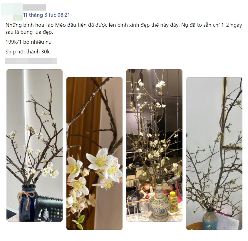 Mình thường nhập cành từ nhà bà con rồi đem về miền xuôi bán. Chị em năm nay chuộng thú chơi cành cây rừng khẳng khiu nên bán cũng rất đắt hàng", chị Tâm Nguyên một địa chỉ online đang bán loại cành táo mèo này chia sẻ.