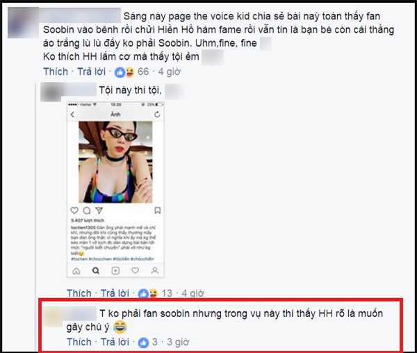 Đáng chú ý, mặc dù không theo dõi Hiền Hồ song Tóc Tiên vẫn giữ trạng thái "follow" Soobin Hoàng Sơn trên Instagram. Nhiều đồn đoán cho rằng, nữ huấn luyện viên The Voice 2017 mâu thuẫn với chính học trò vì vướng phải lùm xùm tình cảm liên quan tới Soobin - người em thân thiết của cô.
