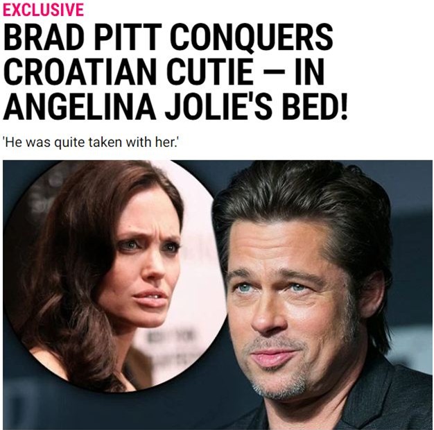 Mới đây nhất, trang Radar Online đã đăng tải tin tức: Brad từng ngủ với một người đẹp nước Croatia (châu Âu) ngay trên giường của Angelina.