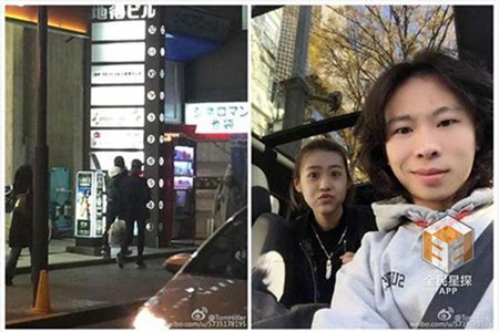 Hình ảnh được cho là Huỳnh Hiểu Minh và Cổ Lực Na Trát hẹn hò tại Nhật Bản. Bên phải là hình ảnh thật của cặp đôi. |