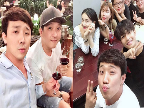 Trường Giang và Nhã Phương đeo đồng hồ đôi đi ăn cùng Trấn Thành nhưng không xuất hiện cạnh nhau.