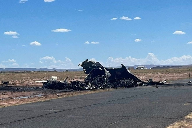 Theo CNN, máy bay rơi xuống bãi phế liệu ô tô và kho xe tải gần rìa sân bay. Video từ trực thăng cho thấy ngọn lửa bao trùm hàng chục mét vuông, nhiều phương tiện và nhà kho bị thiêu rụi, khói đen cuồn cuộn bốc cao.